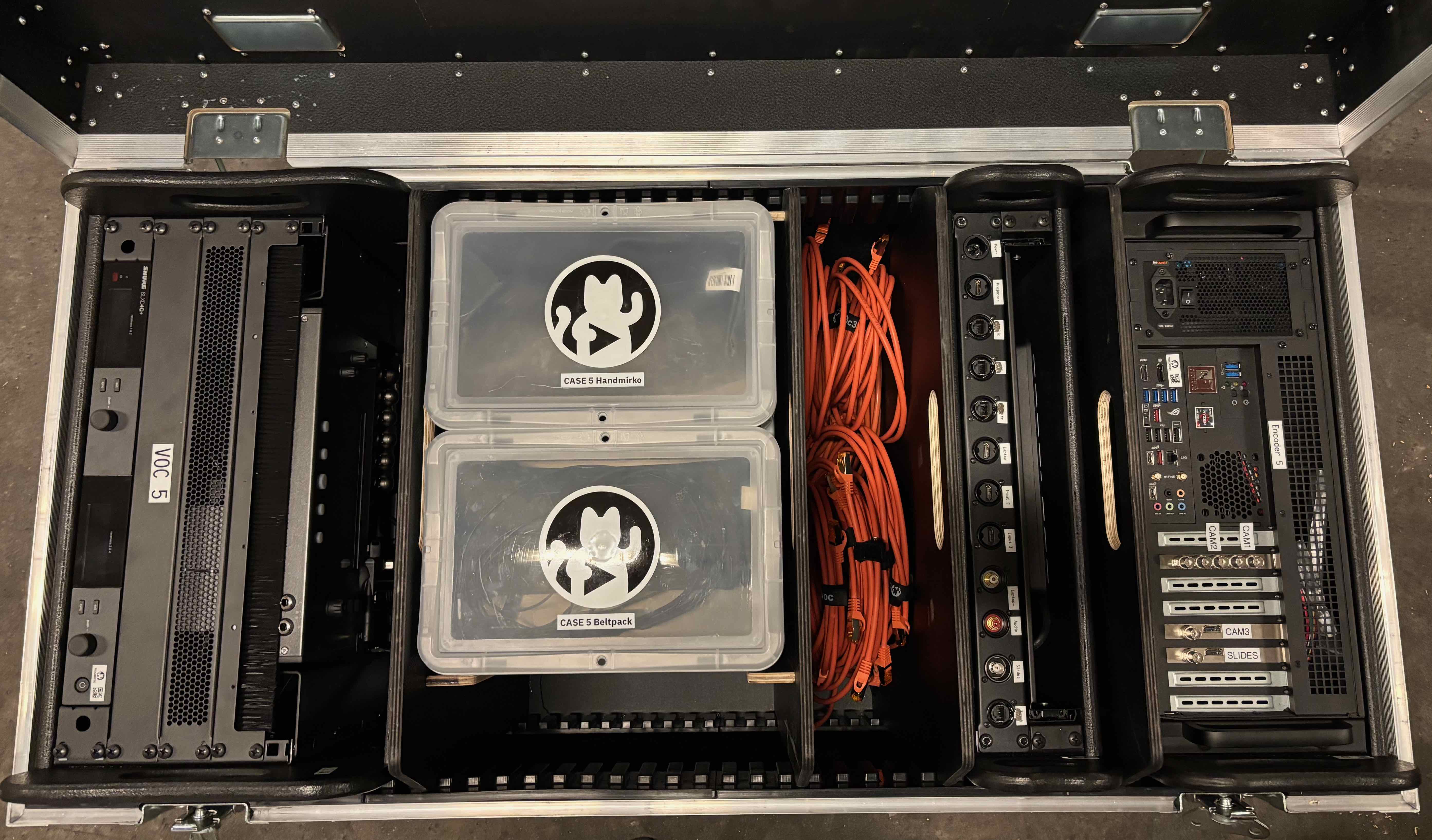 - Accessories (back tower): Intercom crate, ethernet crate, audio and DI crate